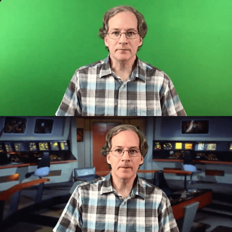 Friendly advice… If you are practicing with your new green screen backdrop, don’t wear a plaid shirt with blue-green in it.