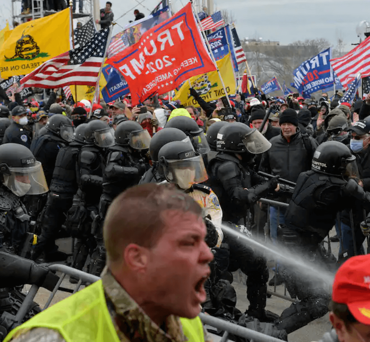 Earlier in the week, the Justice Department charged a woman with disorderly conduct and trespassing after videos showed her egging on an attack on a New York Times photographer inside the Capitol during the rioting. Investigators say that in one of the videos, Sandra Pomeroy Weyer of Mechanicsburg, Pa., can be heard calling the photographer a traitor and urging others to “get her out” and “mace her.” —Washington Post